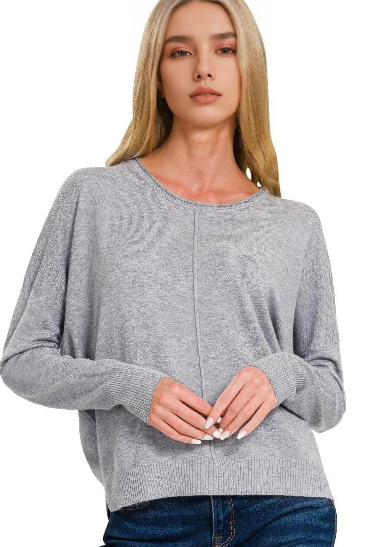 Discover effortless elegance with this viscose sweater that's as soft as it is stylish. The smooth viscose and nylon blend feels amazing against your skin while the distinctive front seam detail adds visual interest and dimension. With its classic round neckline, this sweater is your new wardrobe essential—dress it up with a skirt or keep it casual with your favorite bottoms. Simple, sophisticated, and endlessly wearable, it's the kind of piece you'll reach for again and again.