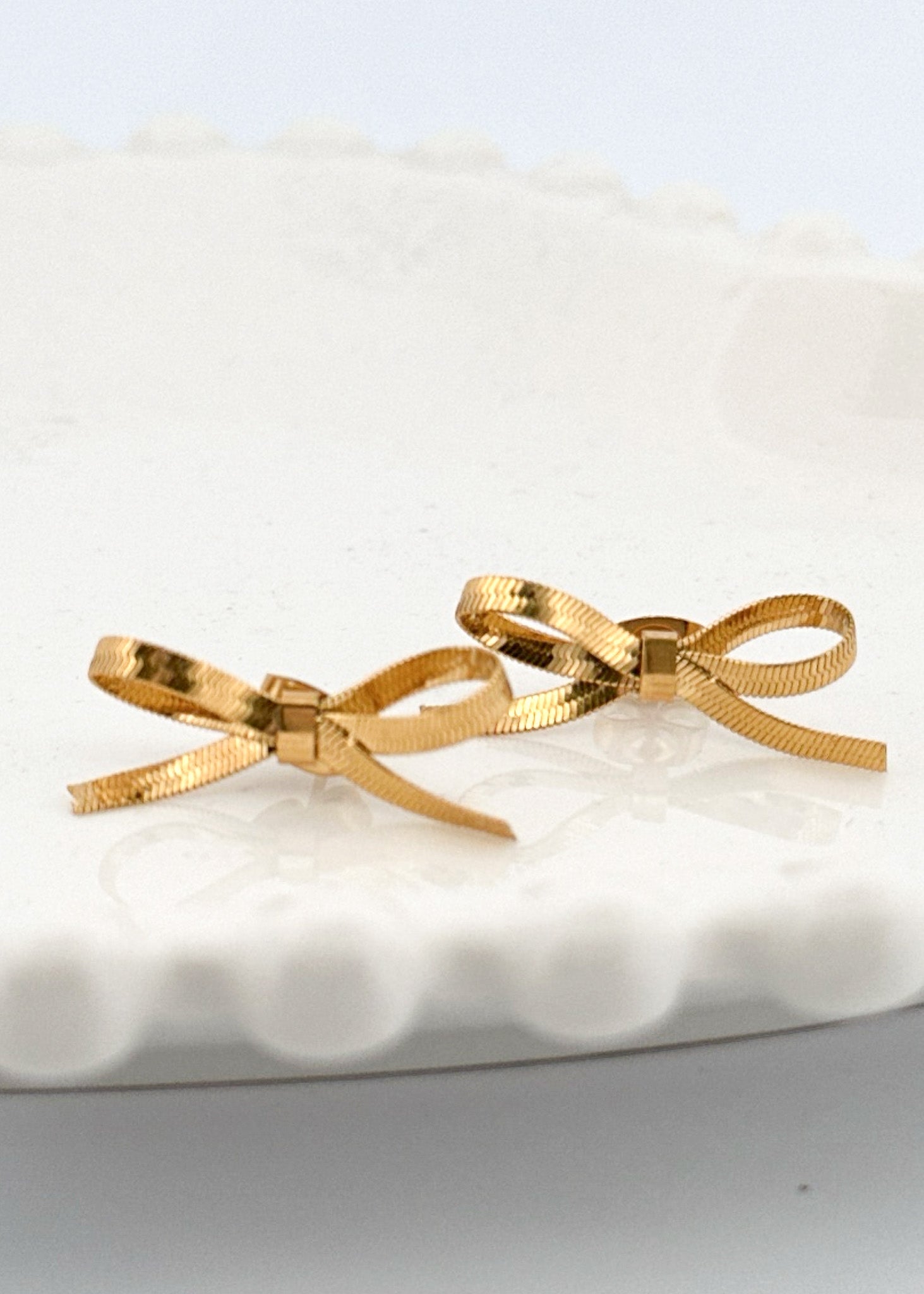 Introducing our exquisite bow earrings These elegant earrings effortlessly combine sophistication and charm, making them the perfect accessory for any occasion. Crafted with meticulous attention to detail, these earrings are sure to add a touch of glamour to your ensemble. Elevate your style with these timeless and versatile earrings that will surely make a statement wherever you go.